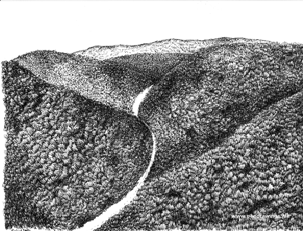 Click here to download PDF with templates and finished drawings to practice drawing distant foliage. In vol 1&2 of my pen and ink drawing workbooks, I discuss additional ways to draw distant foliage. The manner of use of distant foliage/element in a composition along with its interaction with other elements is discussed in detail as well.