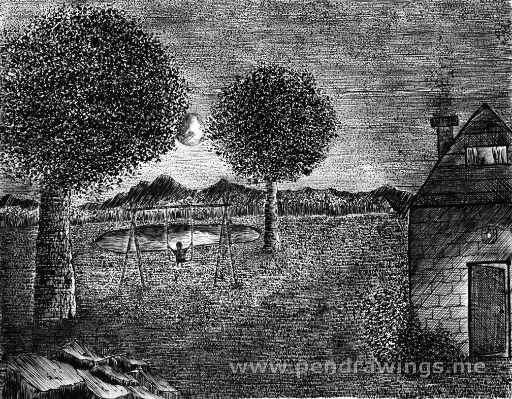 This is a great technique for doing quick sketches and drawings of trees. Following are some quickly done ‘mini landscapes’ using this technique. You can also use detailed ‘leaf stroke’ on close up foliage and parallel line technique on trees at some distance as shown below.